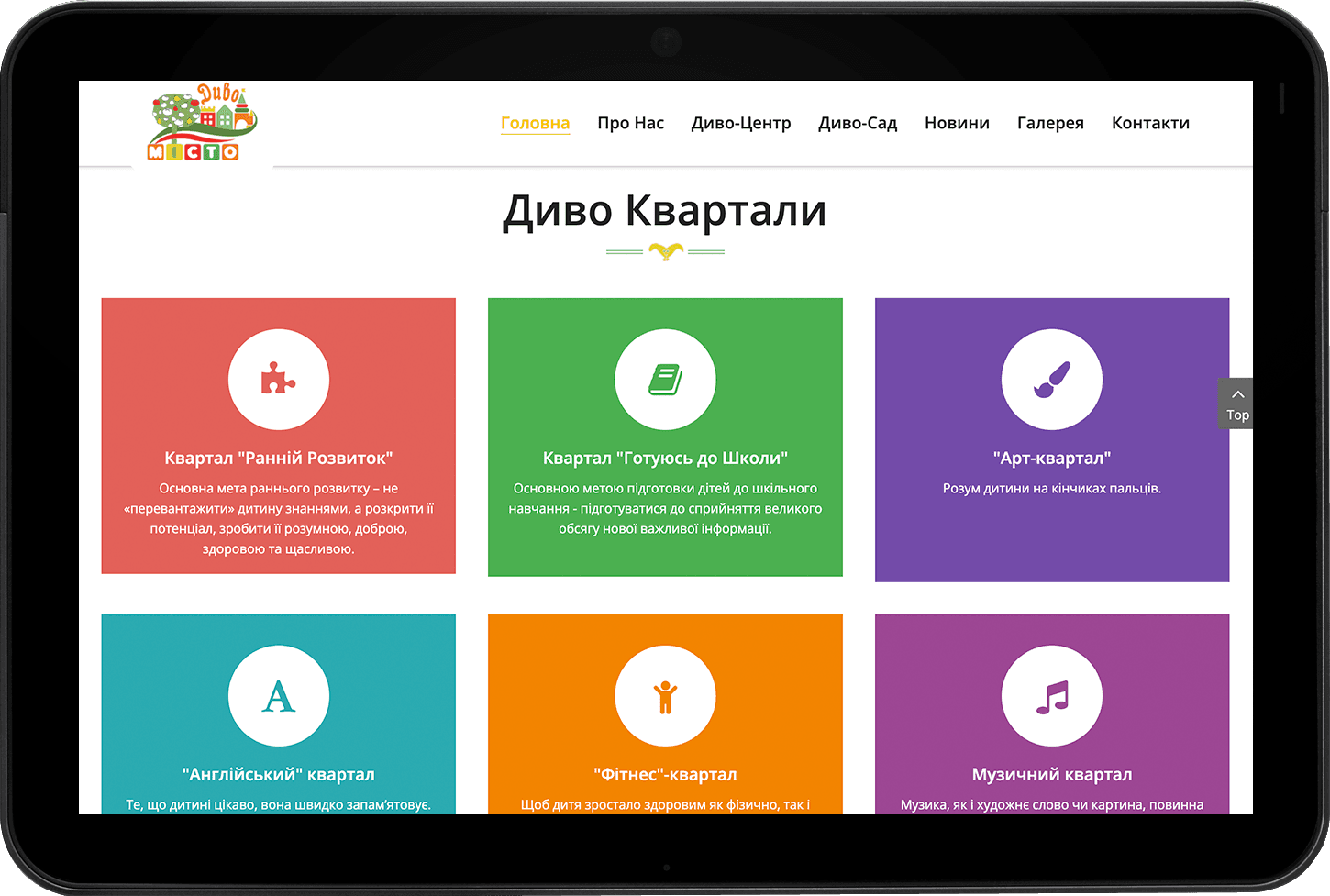 Замовником було поставлено завдання створити новий сайт дитячого центру раннього розвитку, який відповідає чітким вимогам до дизайну та фірмового стилю. Кожен візуальний момент узгоджений і затверджений замовником. Одним із ключових завдань було впровадження галереї та розміщення інформації щодо послуг центру розвитку.