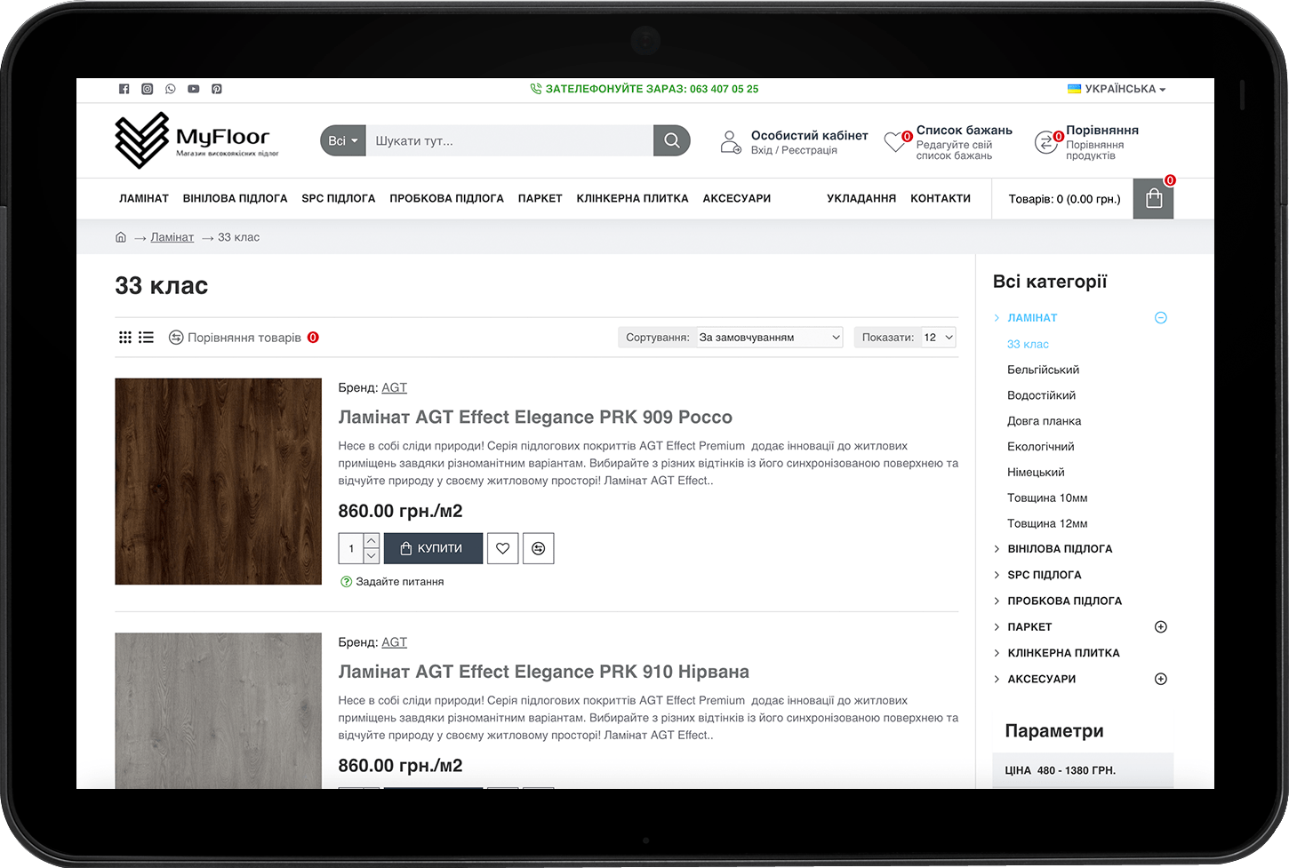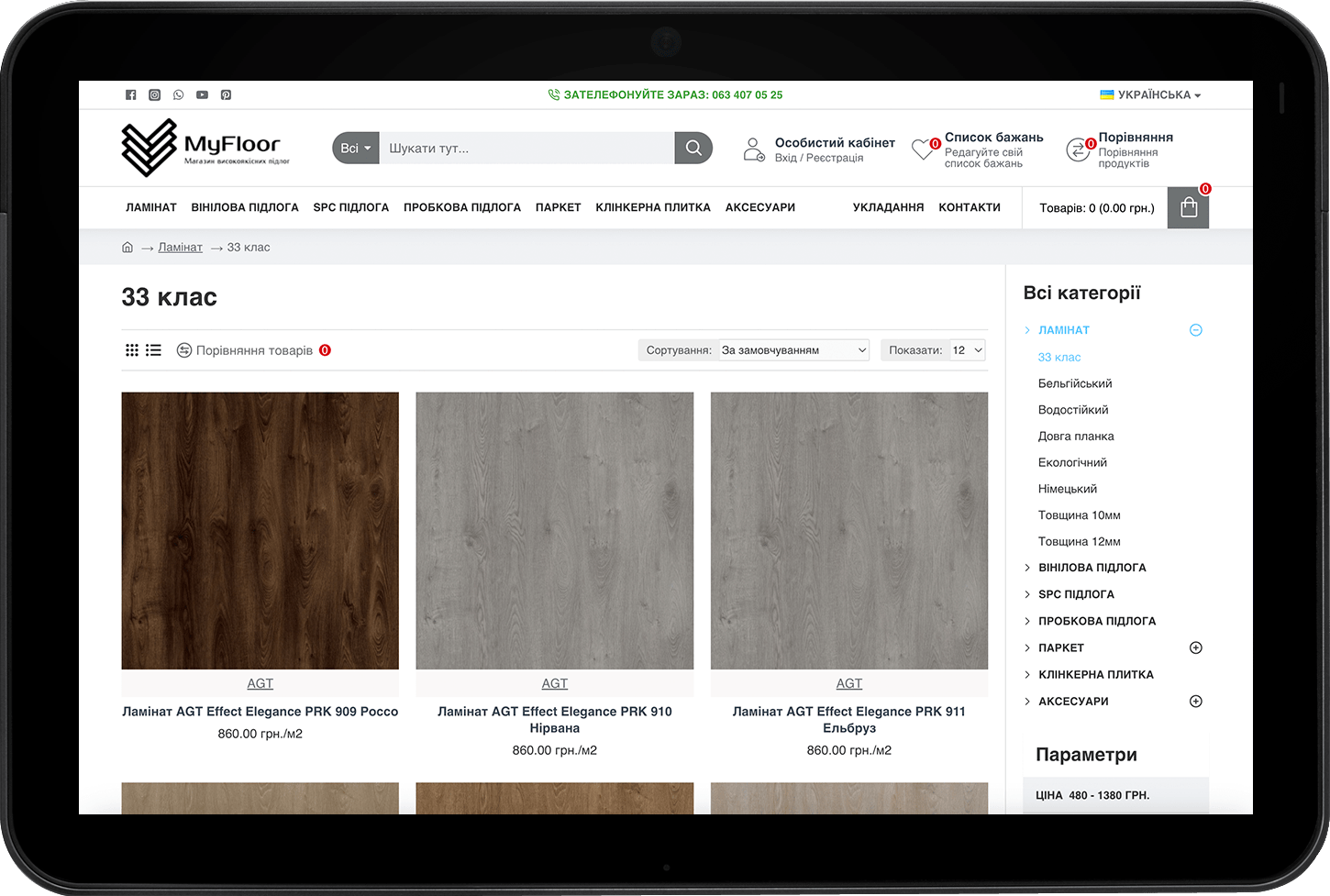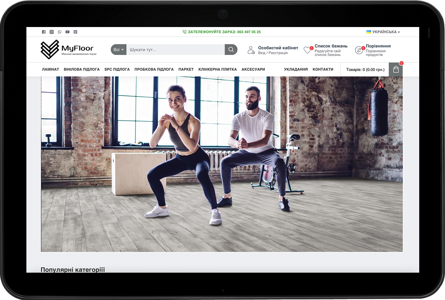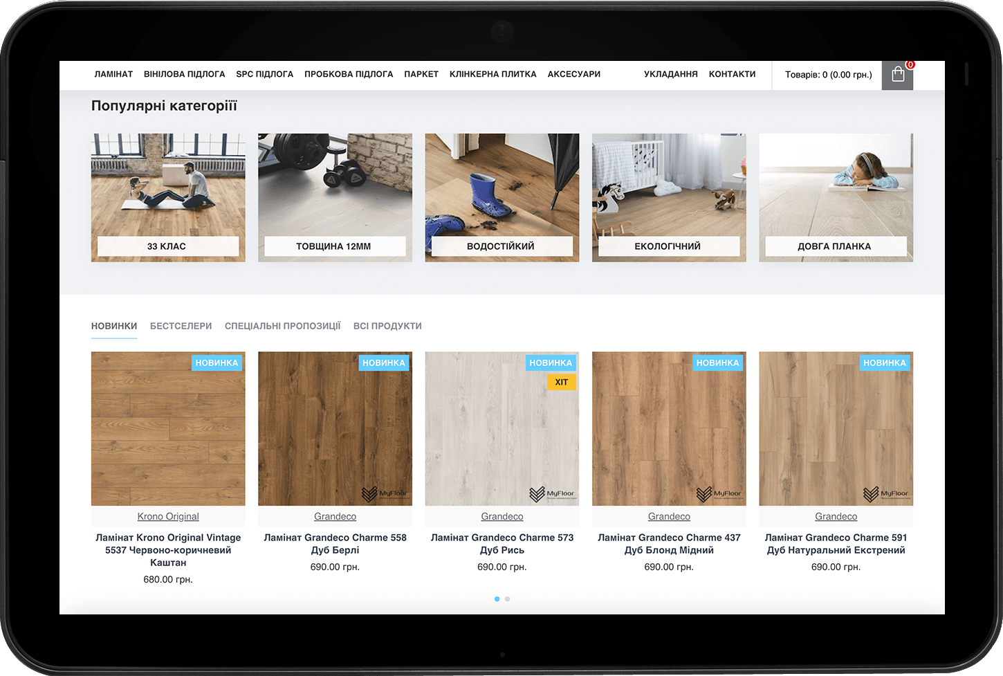 Замовником поставлено завдання створити інтернет-магазин високоякісної підлоги, який відповідає чітким вимогам до дизайну та фірмового стилю.
