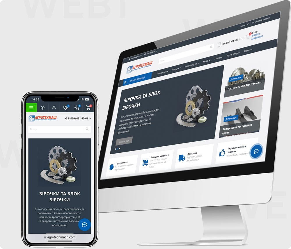 Заказчиком поставлена задача создать интернет-магазин производственной компании Агротехмаш, отвечающий четким требованиям к дизайну и фирменному стилю.