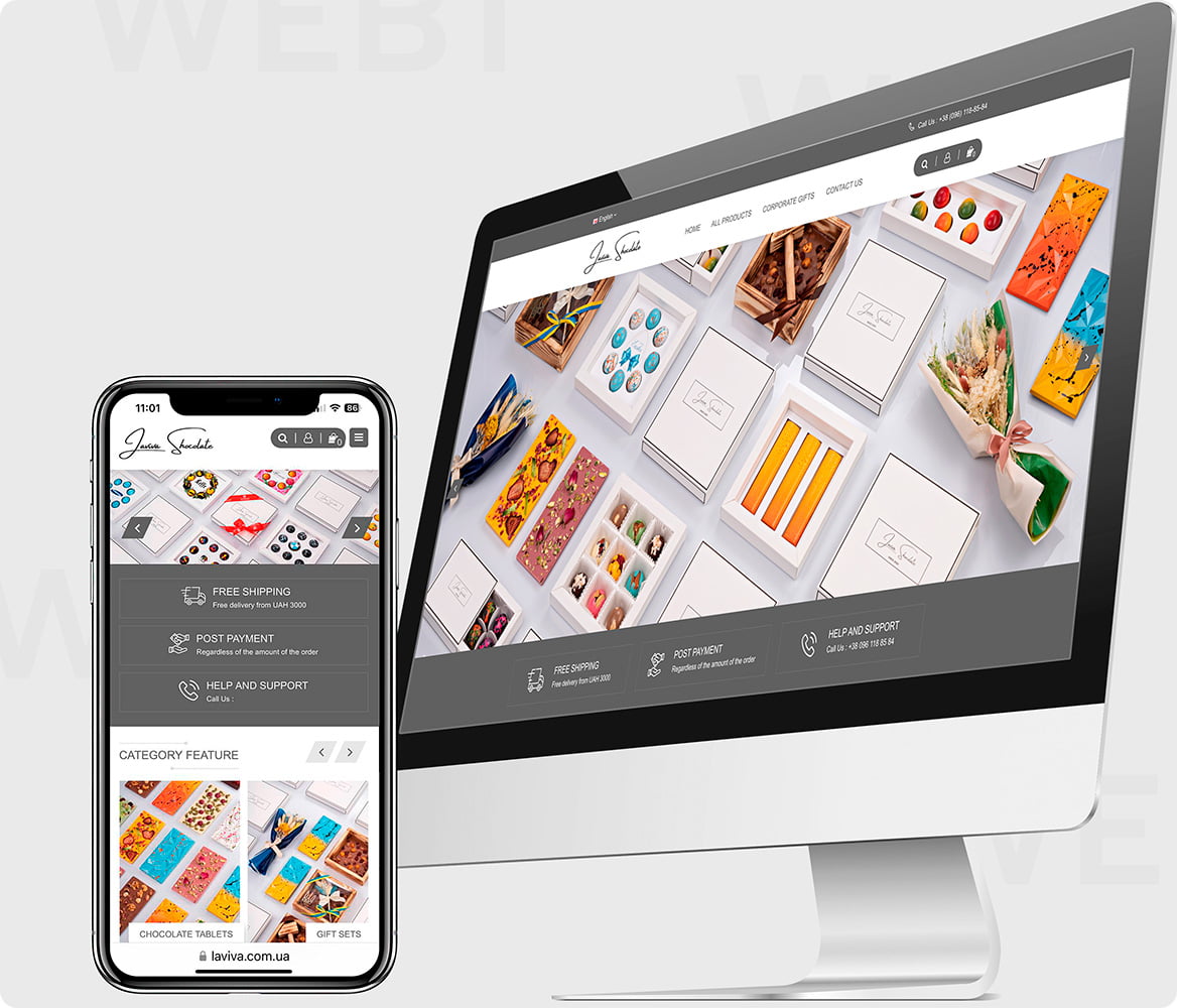 Заказчиком была поставлена задача создать простой и лаконичный интернет-магазин шоколада Laviva. Были выдвинуты четкие требования к дизайну и фирменному стилю.