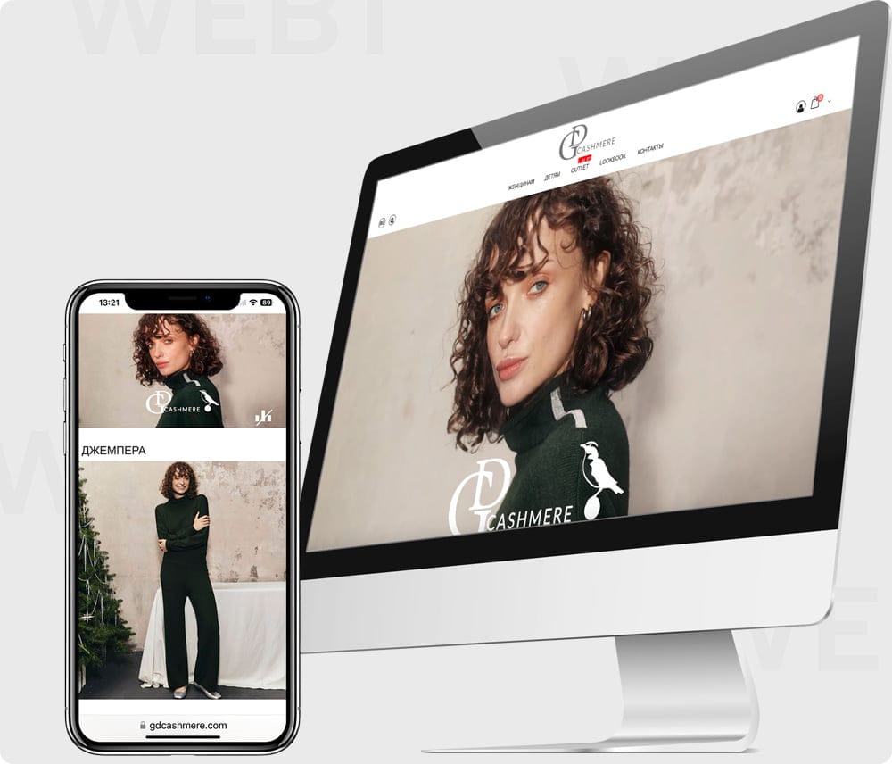 Заказчиком поставлена задача создать интернет-магазин трикотажной одежды из кашемира GD CASHMERE, отвечающей четким требованиям к дизайну и фирменному стилю.
