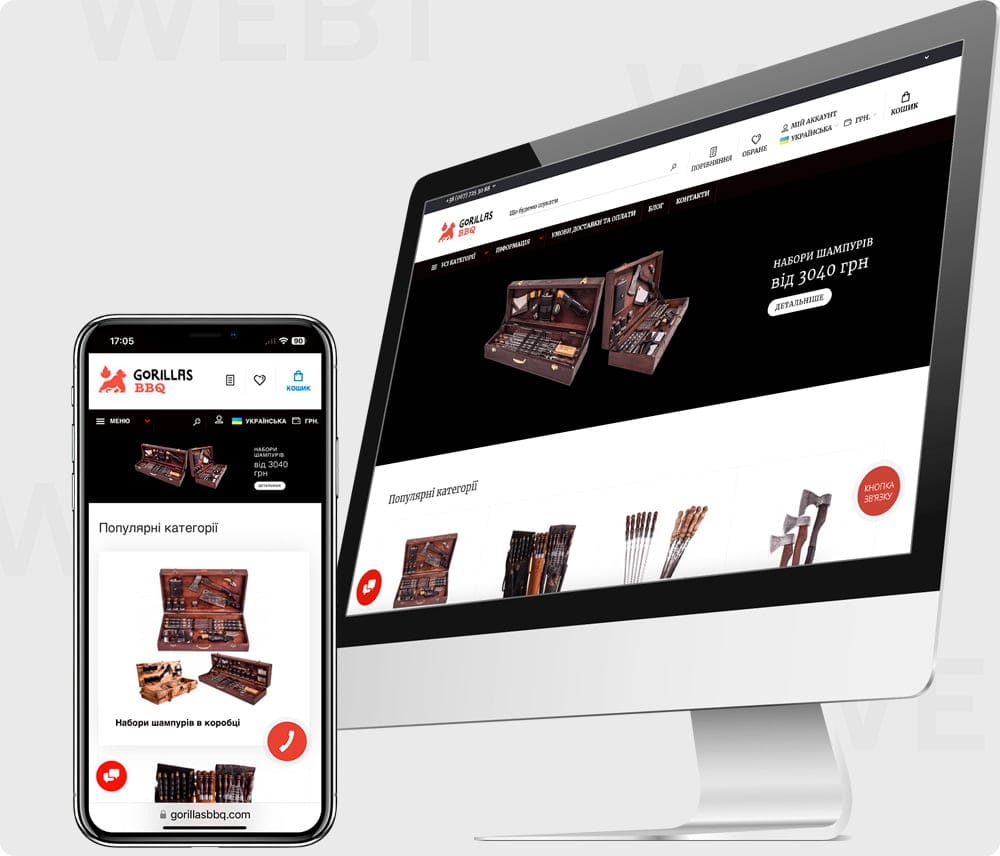 Заказчиком была поставлена задача сделать интернет магазин товаров для туризма GorillasBBQ. Были предъявлены строгие требования к дизайну, фирменному стилю.