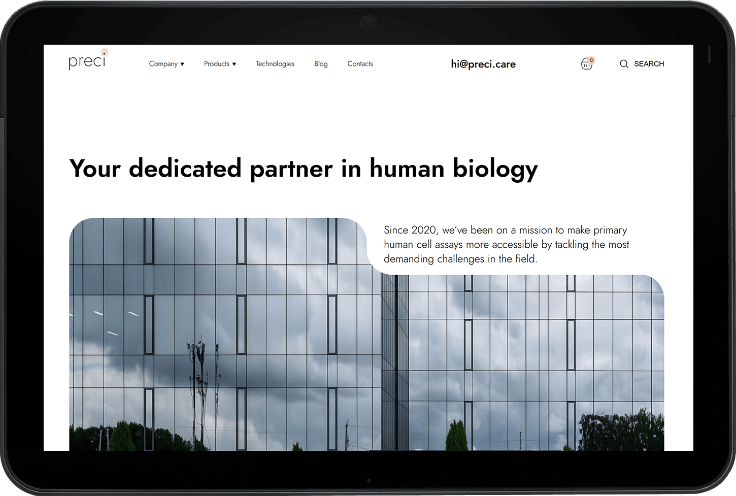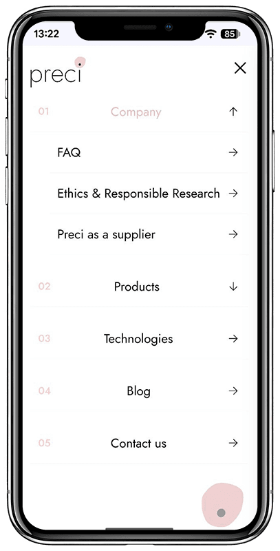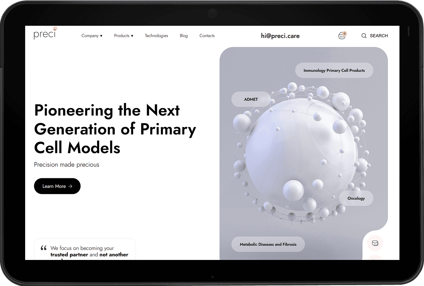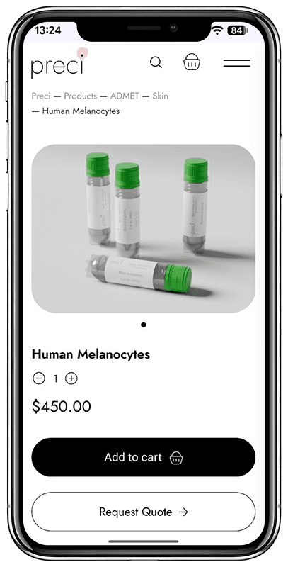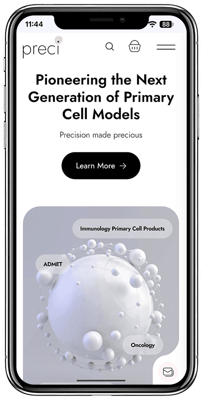 Заказчиком поставлена задача создать современный сайт для биотехнологической компании Preci, специализирующейся на разработке и поставке человеческих клеточных моделей, ECM-материалов и биологических образцов для научных исследований.