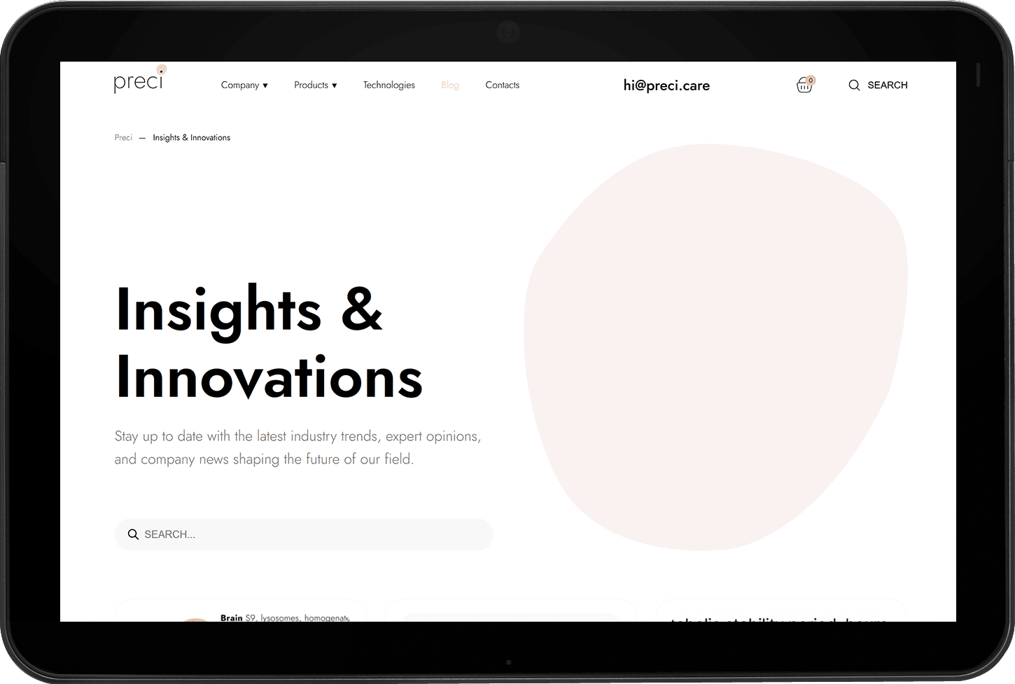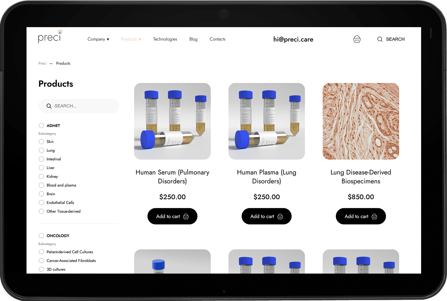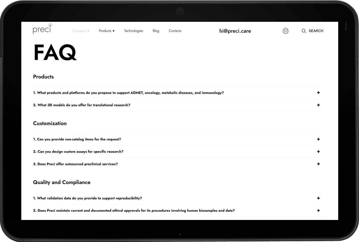 Заказчиком поставлена задача создать современный сайт для биотехнологической компании Preci, специализирующейся на разработке и поставке человеческих клеточных моделей, ECM-материалов и биологических образцов для научных исследований.