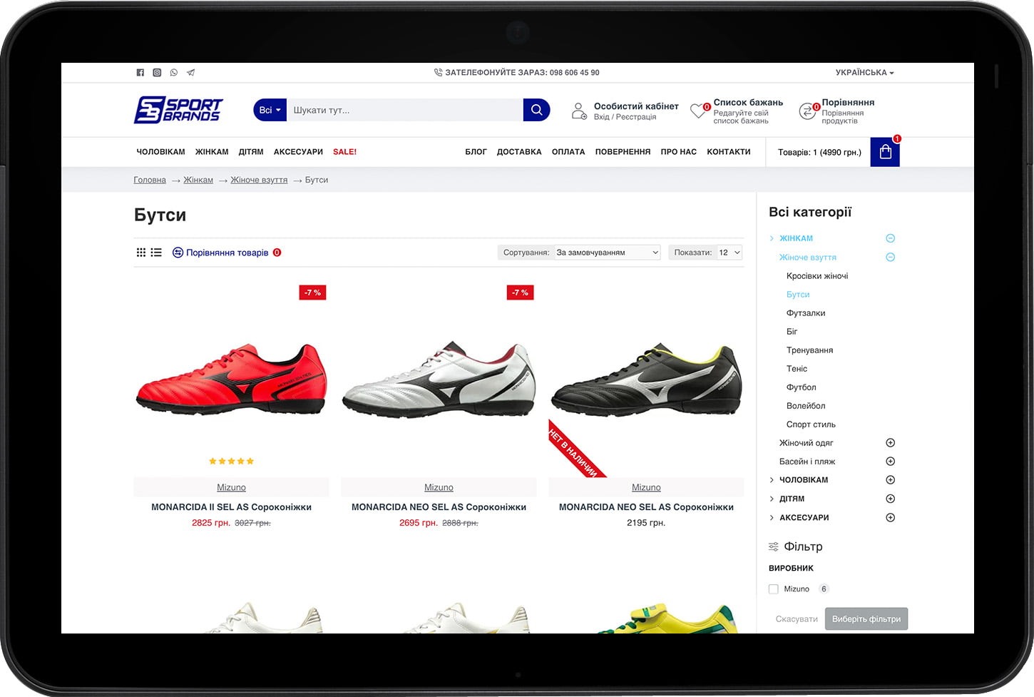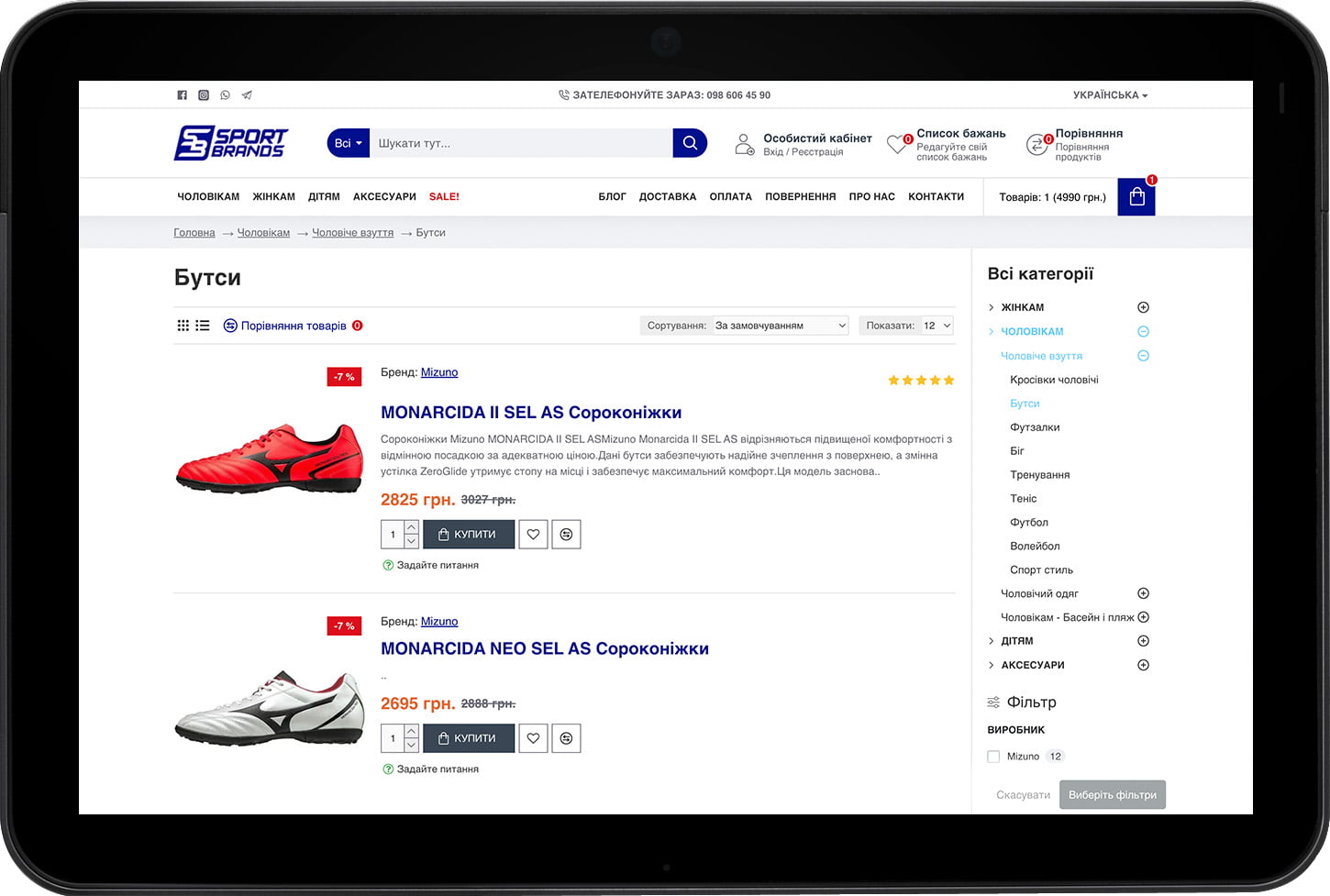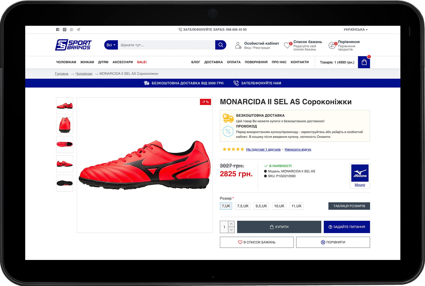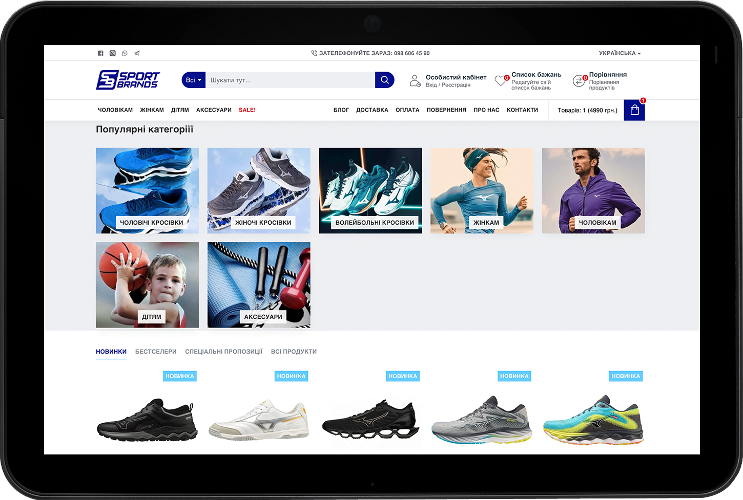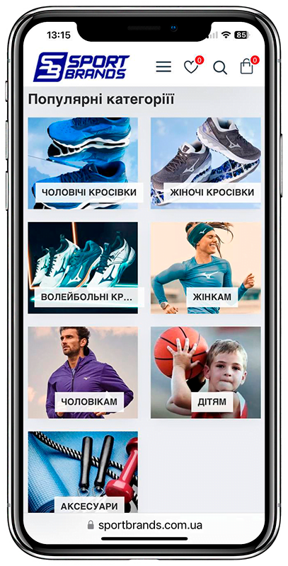 Заказчиком поставлена задача создать интернет-магазин спортивной брендовой одежды и обуви SportBrands, отвечающий четким требованиям к дизайну и фирменному стилю. Каждый визуальный момент согласован и утвержден заказчиком. Одной из ключевых задач было использование синхронизации сайта с программным обеспечением 1С.